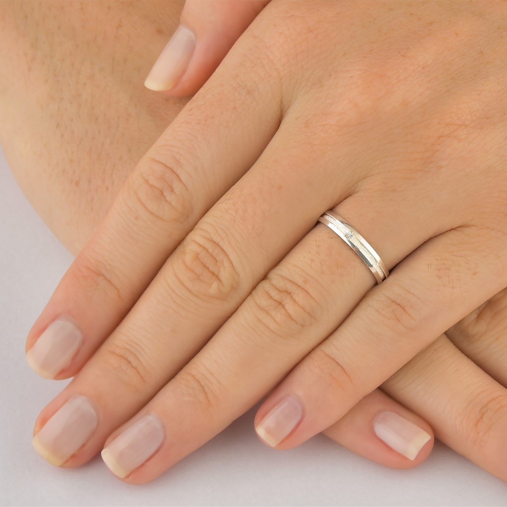 Par de Alianças de Namoro em Prata 925 Diamantado no meio 3mm e Zircônia + Caixinha