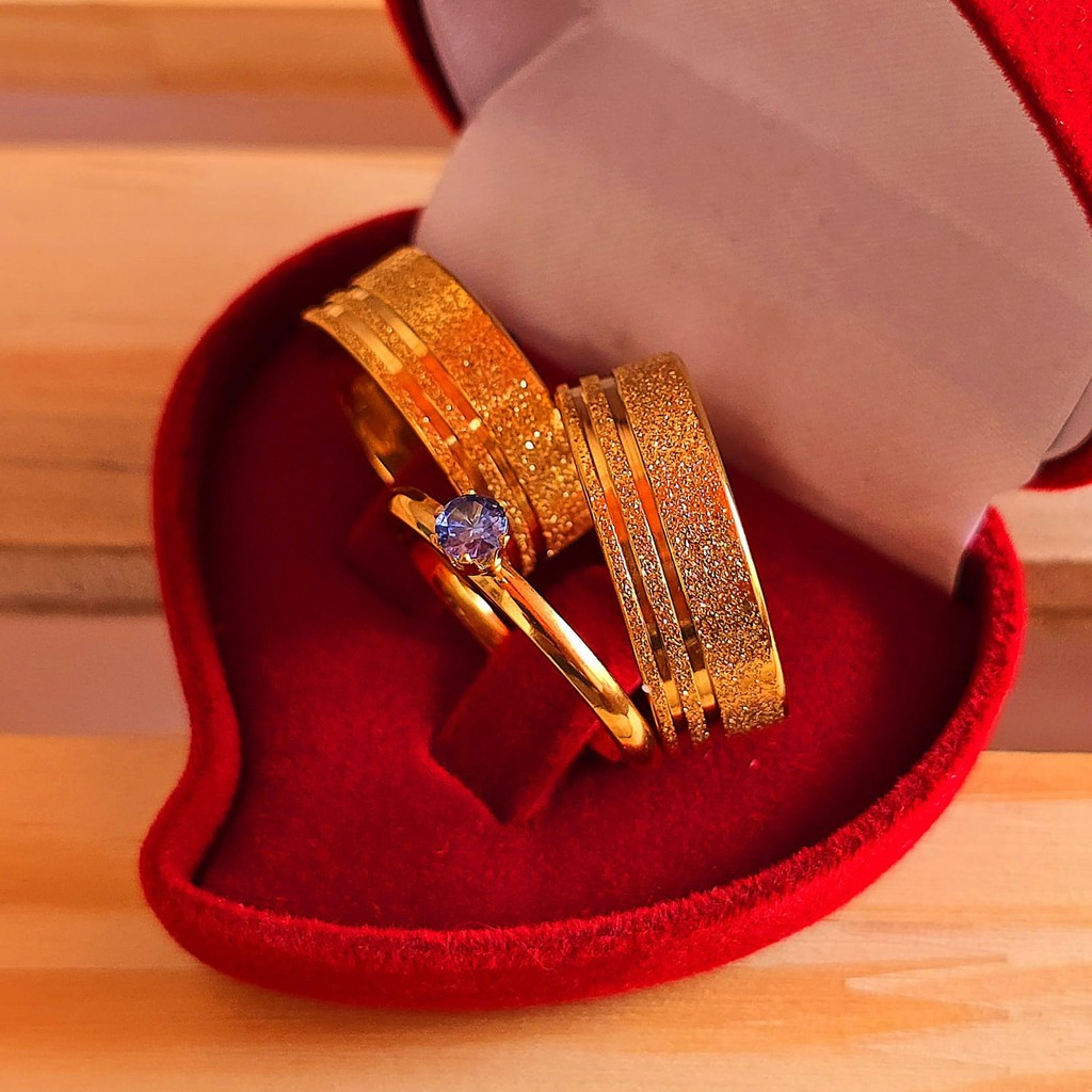 Par de Alianças diamantadas 8mm Banhado a Moeda Antiga + Aparador + Solitário + caixinha veludo (COD-401)
