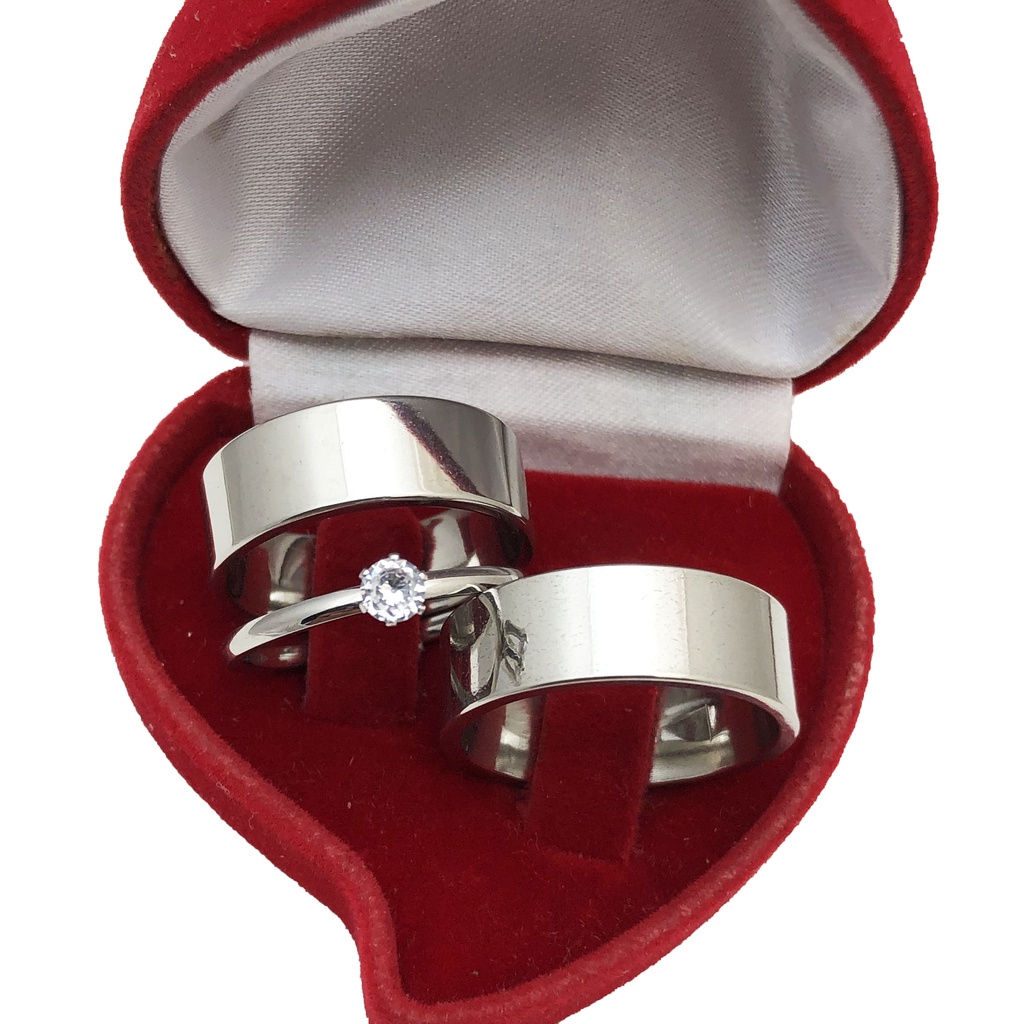 Par de Alianças Namoro Prata Compromisso Tradicional Classica Lisa Quadrada 8mm + Anel