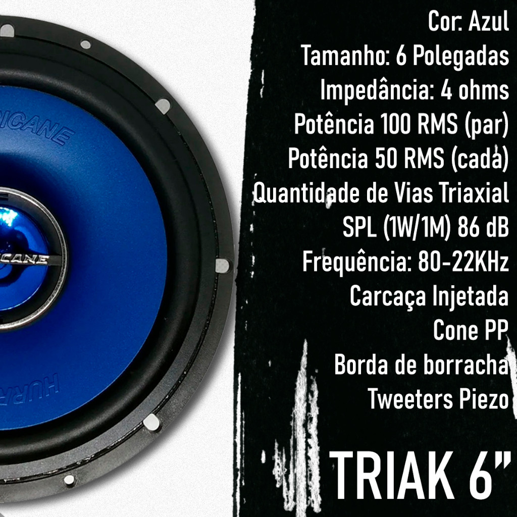 Par de Alto Falante 6 Polegadas Hurricane Triak 6 100 WRMS 4 Ohms Som Automotivo Triaxial