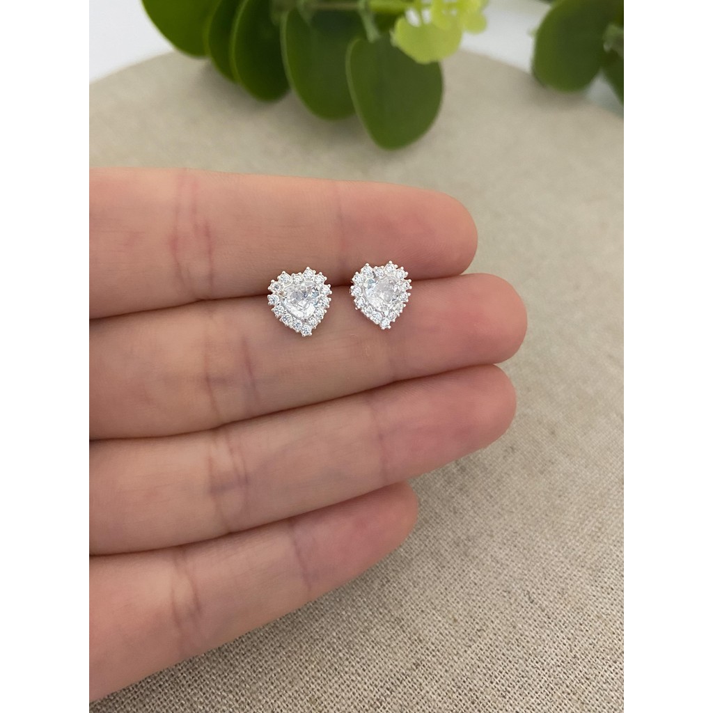 Par de Brinco Prata 925 Delicadas 9mm a 11mm Coração com Zircônia Par de Jóias