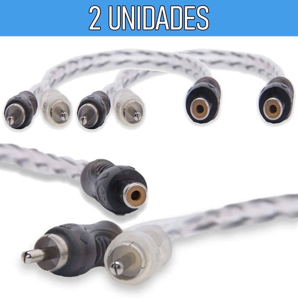 Par de Cabos Injetado Blindado Y 1 Fêmea 2 Macho para Módulo Som Automotivo .