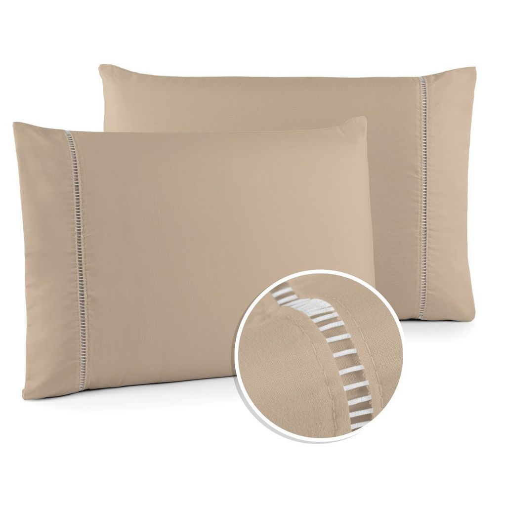 Par De Fronhas 400 Fios 50x70 Micropercal Com Detalhe Ponto Palito