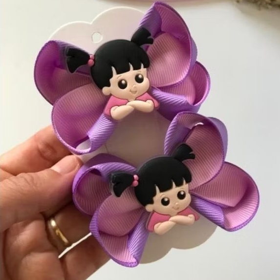 Deixe o penteado da sua pequena ainda mais encantador com esses laços inspirados no clássico Monstros S.A. 💜💚💙 ✨ Detalhes do produto: Medidas aproximadas: 9 cm de largura x 4 cm de altura. Feitos no bico de pato, com borracha antiderrapante que não escorrega no cabelo da criança. Fitas em gorgorão de alta qualidade Personagens emborrachados super fofos 💜 Disponíveis em três modelos: Boo (rosa e lilás) Mike (verde e rosa) Sully (azul e lilás) 🌸 Ideais para o dia a dia, festas ou para completar looks temáticos. 🌟 Feitos com muito carinho, garantindo conforto, beleza e durabilidade!