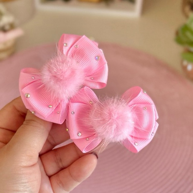 Onde comprar Par de laços hair clips de cabelo infantil com strass e pompom médio festa passeio dia a dia lacinho?