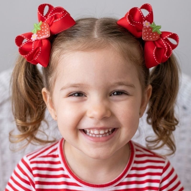 Par de Laços Infantil Boutique Duplo Frutinhas – Morango, Uva, Maçã, Cereja, Abacaxi e Melancia | Laço Fofo para Meninas