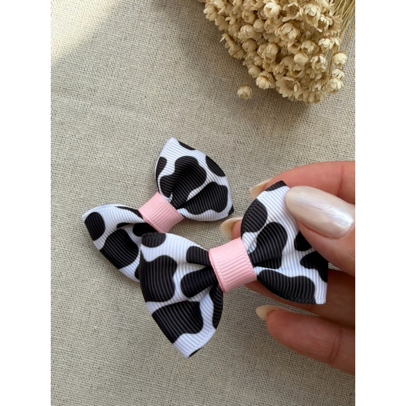 Par de laços modelo vaquinha - tema festa de aniversário FAZENDINHA. no bico de pato 4,5cm
