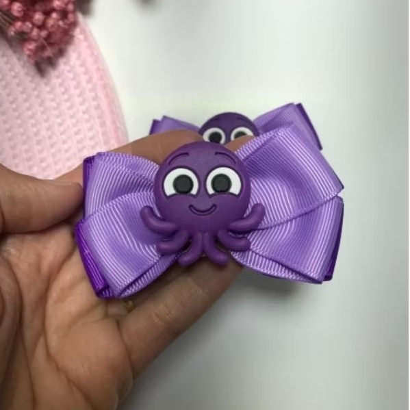 Par de Laços Tema Bolofofos Pow Polvo na Presilha
