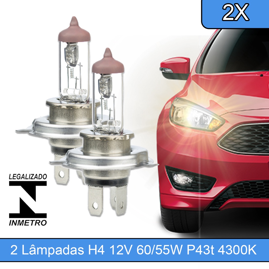 Par De Lâmpadas Automotiva Halógena H4 12v 60/55w P43t para Farol
