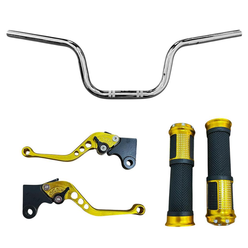 Par De Manete + Manopla + Guidão Cromado Cg 125/150 Titan Freio A Lona