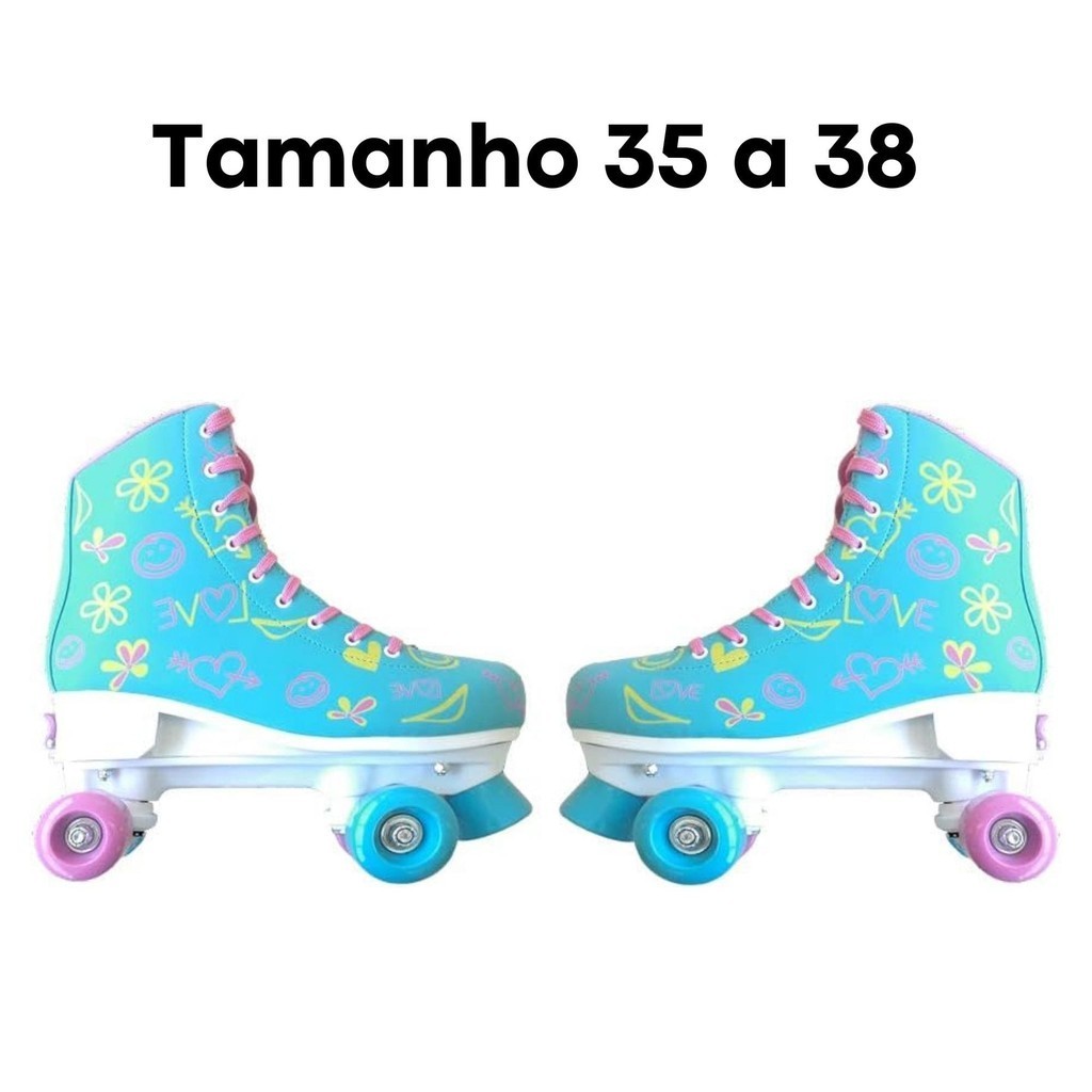 Par de Patins Radkal 4 Rodas Ajustáveis Tamanho 35 a 38 Azul Fenix Brinquedos Suporta até 70Kg - RL-07A