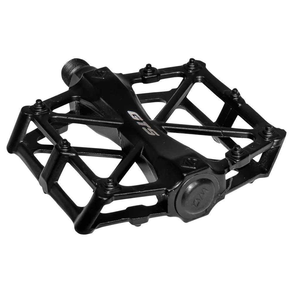 Pedal plataforma GTS. Seu modelo leve proporciona conforto, e seu design foi pensado na estabilidade durante o pedal. Contém pequenos pinos que geram uma pegada mais firme enquanto pedala. Especificações: -Marca: GTS. -Modelo: Plataforma. -Material: Aço e Alumínio. -Peso: 380 gramas o par. -Tamanho: 115 mm x 95 mm x 25 mm. -Eixo rosca: 13 mm x 13 mm 9/16 grossa.. -Contém Par de pedal, lado direito e lado esquerdo. POR QUE ESCOLHER UM PEDAL COM ROLAMENTO? r: Maior durabilidade, giro mais suave e resistência ao desgaste. Ideal para quem busca desempenho e baixa manutenção, mesmo em condições adversas. Melhor escolha para trilhas e longas distâncias!