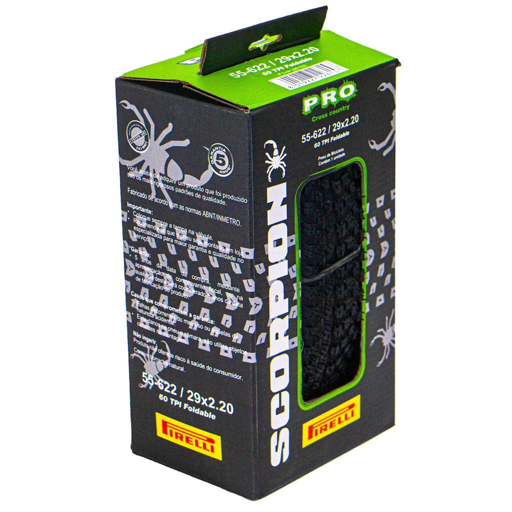 ========================= SOBRE O VENDEDOR - Avelar Shop ========================= Presentes no mundo do ciclismo há 25 anos, 15 deles em competições esportivas e 10 como lojista, temos um grupo composto por 4 lojas físicas, Bike Shop Avelar Drumond, BH Concept, Avelar Shop e Bike Light, localizadas em Conselheiro Lafaiete/MG e Belo Horizonte/MG. Somos representantes das principais marcas de ciclismo do mercado e enviamos para todo o Brasil. Nossos envios acompanham nota fiscal e nossos produtos têm as devidas garantias asseguradas com os fornecedores/distribuidores oficiais das marcas. Além das lojas de Bicicletas, temos a empresa Avelar Sports, uma das líderes do país em locação de estruturas e organização de eventos. Vencedora do prêmio Guidom de Ouro 2019 com o evento "Internacional Chaoyang Estrada Real". ================== DESCRIÇÃO DOPRODUTO ================= Par de Pneu Mtb Pirelli Scorpion Pro 29 x 2.20 Kevlar Preto A Pirelli trouxe para sua bike toda a qualidade, resistência e modernidade em tecnologia no Pneu Pro Scorpion. Ótima opção para prática da modalidade XC, utilizado em diversos tipos de terrenos como Terra batida, cascalho, grama, lama, e terra solta, tudo em um só pneu. =============== ESPECIFICAÇÕES =============== Marca: Pirelli Modelo: Scorpion Pro Garras baixas e juntas. Pneu para bicicletas de aro 29 Medida: 29x2.20 (55-622) Máximo de P.S.I 45. Cor: Preto. Peso: 685 g (Unidade). Uso Misto. 60 TPI Pneu em Kevlar. (Sem arame) Pneu com Certificação ISO 9001 Quantidade: 02 Unidades OBSERVAÇÃO: Fotos meramente ilustrativas. As especificações estão sujeitas a alterações sem aviso prévio, podendo variar com base na disponibilidade de componentes e outros fatores. ================ ENVIO DO PRODUTO ================ Seu produto será enviado em ATÉ 24 horas úteis após a confirmação do pagamento. =========== NOTA FISCAL =========== Todos os nossos produtos são enviados com nota fiscal em seu nome e via transportadoras parceiras. ==== SAC ==== O suporte ao cliente é um dos nossos compromissos! Após a aprovação da compra você terá acesso aos nossos contatos, e poderá contar com todo o apoio da nossa equipe de atendimento.