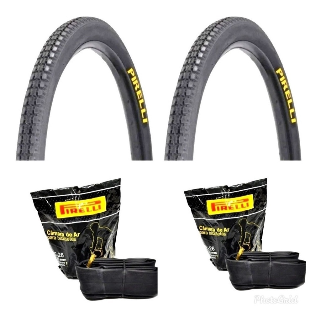 Os Pneus de bicicleta são fundamentais para o rendimento de qualquer ciclista, eles são o ponto de contato de qualquer Bicicleta com o solo. Pneu Pirelli Aro 26 Borrachudo Primor 26x1.1/2x2. Pneu para uso MTB e homologado pelas principais montadoras de bicicletas, proporciona maior tração, com o melhor custo-benefício. - Medida - 26x1.1/2x2 - Modelo - Borrachudo Primor - Aro - 26 - Capacidade de inflagem - 60PSI. 2 Camaras De Ar Pirelli ou Kenda PRODUTOS ORIGINAIS COM NOTA FISCAL E GARANTIA POSTAGEM IMEDIATA