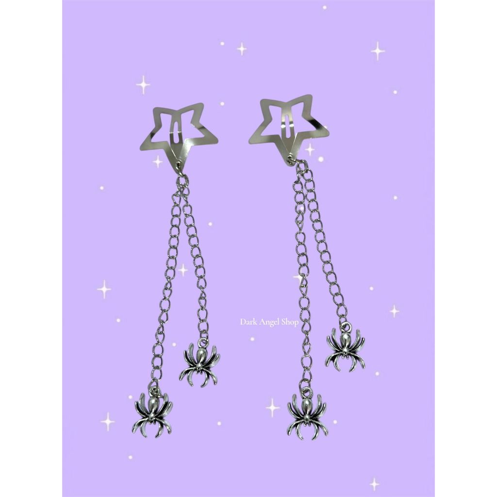 Par de Presilha Aranha - Par de presilhas pratas com corrente e pingente de Aranha Prata