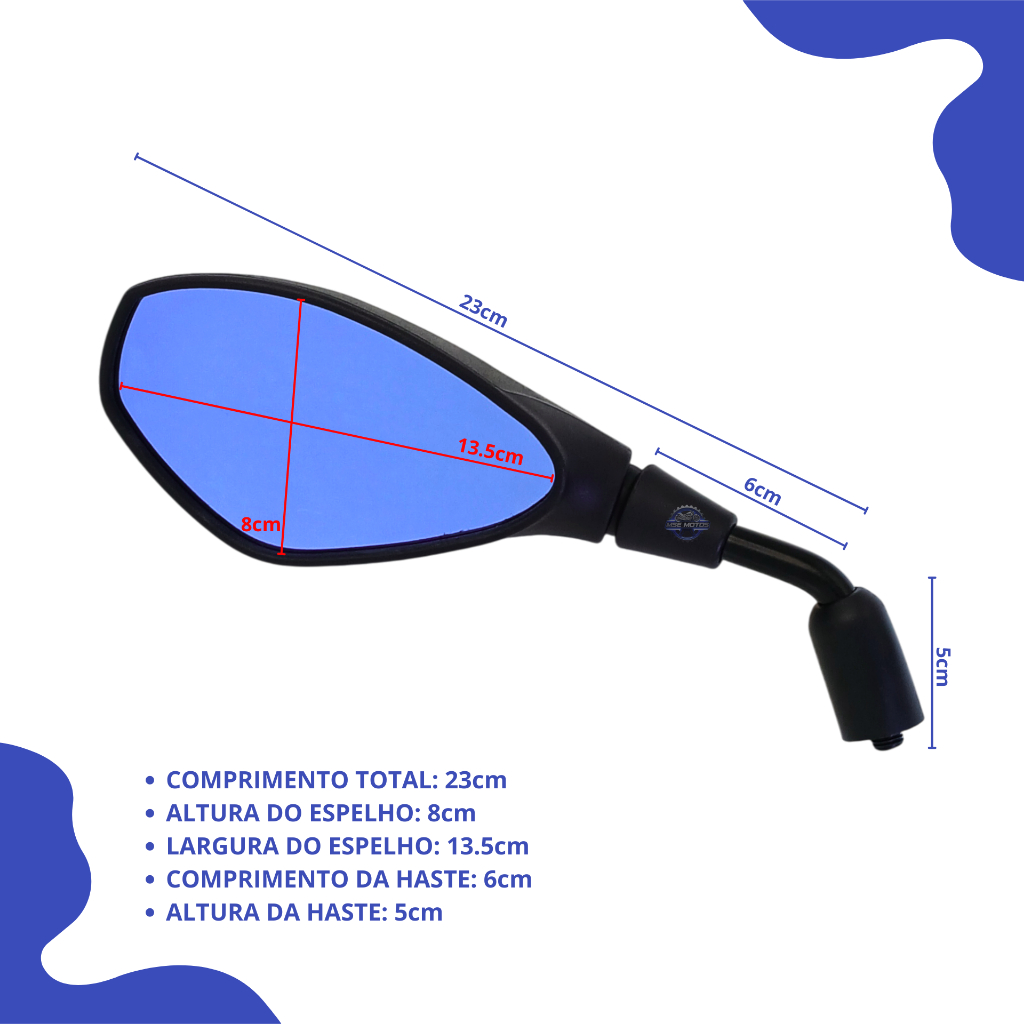 PAR DE RETROVISOR BMW FIXO HASTE CURTA ROSCA HONDA TITAN FAN XRE CB300 COM LENTE AZUL