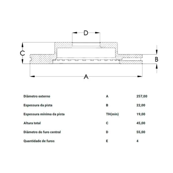Montadora TOYOTA ETIOS PLATINUM 1.5 AT 2NR-FBE - 1.5 L 16V DOHC L4 2013 - 2023 ETIOS READY 1.5 AT 2NR-FBE - 1.5 L 16V DOHC L4 2013 - 2023 ETIOS XS 1.5 2NR-FBE - 1.5 L 16V DOHC L4 2013 - 2023 ETIOS PLATINUM 2NR-FBE - 1.5 L 16V DOHC L4 2013 - 2016 ETIOS X 1.3 1NR-FBE - 1.3 L 16V DOHC L4 2013 - 2023 ETIOS XLS 1.5 AT 2NR-FBE - 1.5 L 16V DOHC L4 2013 - 2023 ETIOS X 1.3 AT 1NR-FBE - 1.3 L 16V DOHC L4 2013 - 2023 ETIOS XS 1.5 AT 2NR-FBE - 1.5 L 16V DOHC L4 2013 - 2023 ETIOS SEDAN READY 2NR-FBE - 1.5 L 16V DOHC L4 2013 - 2016 ETIOS SEDAN X 1.5 2NR-FBE - 1.5 L 16V DOHC L4 2013 - 2023 ETIOS SEDAN XS 1.5 AT 2NR-FBE - 1.5 L 16V DOHC L4 2013 - 2023 ETIOS SEDAN PLATINUM 2NR-FBE - 1.5 L 16V DOHC L4 2013 - 2016 ETIOS SEDAN PLATINUM 1.5 AT 2NR-FBE - 1.5 L 16V DOHC L4 2013 - 2023 ETIOS SEDAN X 1.5 AT 2NR-FBE - 1.5 L 16V DOHC L4 2013 - 2023 ETIOS SEDAN XLS 1.5 AT 2NR-FBE - 1.5 L 16V DOHC L4 2013 - 2023 ETIOS SEDAN XS 1.5 2NR-FBE - 1.5 L 16V DOHC L4 2013 - 2023 YARIS SEDAN XLS 1.5 AT 2NR-FBE - 1.5 L 16V DOHC L4 2019 - 2023 YARIS SEDAN XL PLUS TECH 1.5 AT 2NR-FBE - 1.5 L 16V DOHC L4 2019 - 2023 YARIS SEDAN XL 1.5 AT 2NR-FBE - 1.5 L 16V DOHC L4 2019 - 2023 YARIS SEDAN XL 1.5 2NR-FBE - 1.5 L 16V DOHC L4 2019 - 2023 YARIS SEDAN XS 1.5 AT 2NR-FBE - 1.5 L 16V DOHC L4 2019 - 2023 YARIS XLS 1.5 AT 2NR-FBE - 1.5 L 16V DOHC L4 2019 - 2023 YARIS XL 1.3 AT 1NR-FBE - 1.3 L 16V DOHC L4 2019 - 2023 YARIS XL 1.3 1NR-FBE - 1.3 L 16V DOHC L4 2019 - 2023 YARIS XS 1.5 AT 2NR-FBE - 1.5 L 16V DOHC L4 2019 - 2023 YARIS X-WAY 1.5 AT 2NR-FBE - 1.5 L 16V DOHC L4 2019 - 2023 YARIS XL PLUS TECH 1.3 AT 1NR-FBE - 1.3 L 16V DOHC L4 2019 - 2023 TÉCNICO DOS DISCO ________________________________________ ALTURA TOTAL : 45 MM DIÂMETRO DO FURO CENTRAL : 55 MM DIÂMETRO EXTERNO : 257 MM ESPESSURA : 22 MM ESPESSURA MÍNIMA : 19 MM INCLUI CUBO : NÃO INCLUI ESTRIAS : NÃO MODELO : VENTILADO POSIÇÃO : DIANTEIRO QUANTIDADE DE FUROS : 4 Conteúdo: 1 Par de disco ------------------------------------------------------------------------------------------------------------------ --- FOTOS ILUSTRATIVAS -- FOTOS ILUSTRATIVAS -- FOTOS ILUSTRATIVAS --- --- FOTOS ILUSTRATIVAS -- FOTOS ILUSTRATIVAS -- FOTOS ILUSTRATIVAS --- ------------------------------------------------------------------------------------------------------------------ Produtos disponíveis para entrega imediata, com correspondências enviadas após a confirmação do pagamento de segunda a sexta-feira. Para esclarecimento de dúvidas, por favor, deixe sua pergunta ou entre em contato através do chat. Estamos à disposição para fornecer informações adicionais. ATENÇÃO: A responsabilidade pela instalação e aplicação da peça é do consumidor. O fabricante não assume responsabilidade pela aplicação convencional ou uso indevido da peça. Antes de efetuar a compra, certifique-se de que a peça é compatível com o modelo do seu veículo. As imagens apresentadas são apenas ilustrativas.