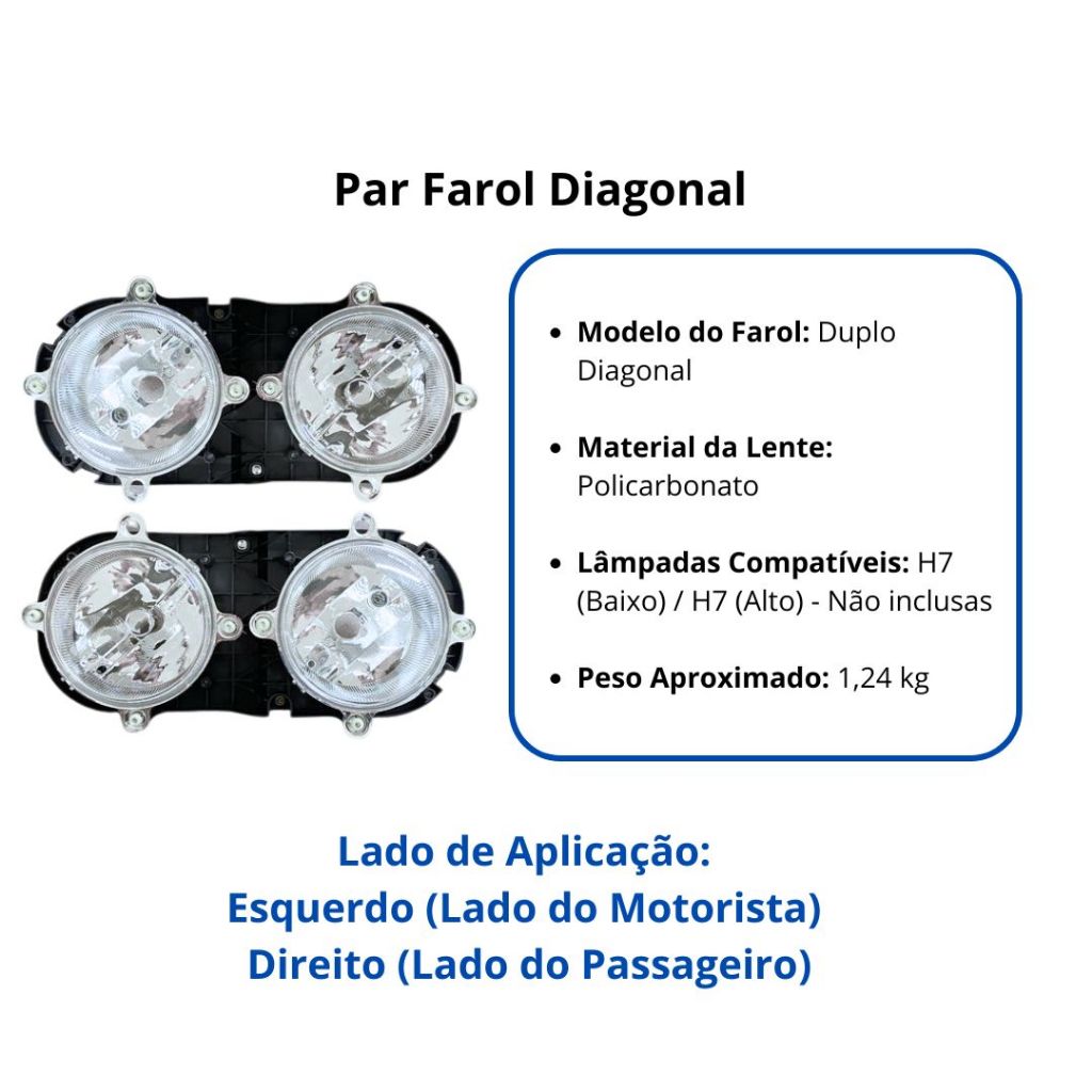 Par Farol Diagonal Dianteiro Duplo Para Caminhão Ford Cargo 2000 a 2006 Nino F-161 F-162