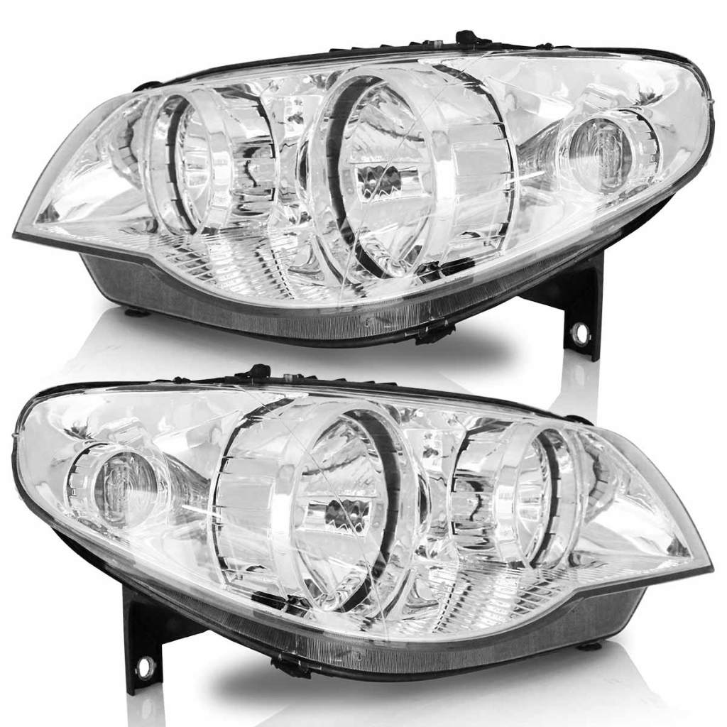 Par Farol Dianteiro Palio G3 2003 a 2016 Máscara Cromada Lente Lisa Acrilico