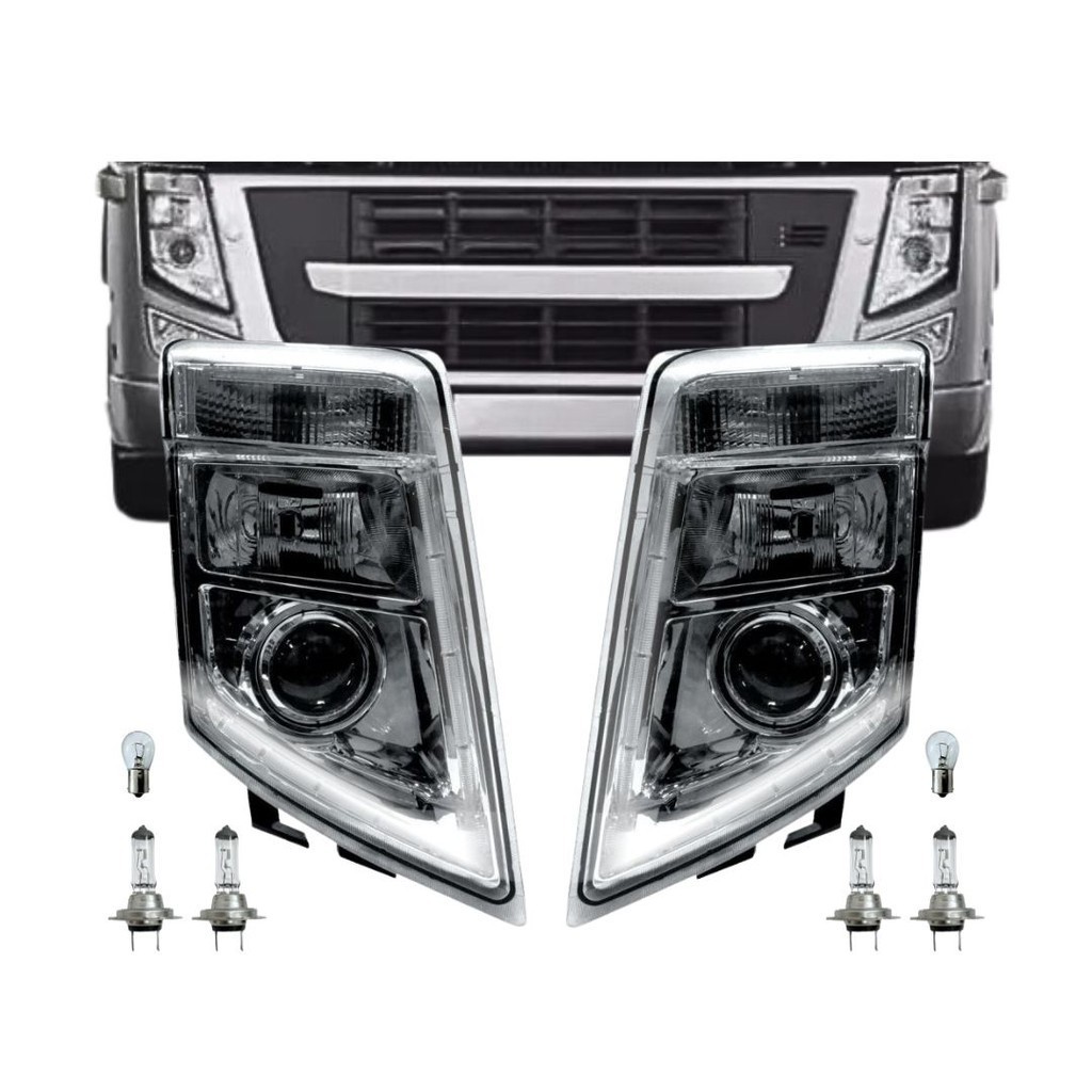 Par Farol Principal Dianteiro Para Volvo FM FH 2009 a 2014 Com DRL Em LED Lâmpadas 21035637 21035638