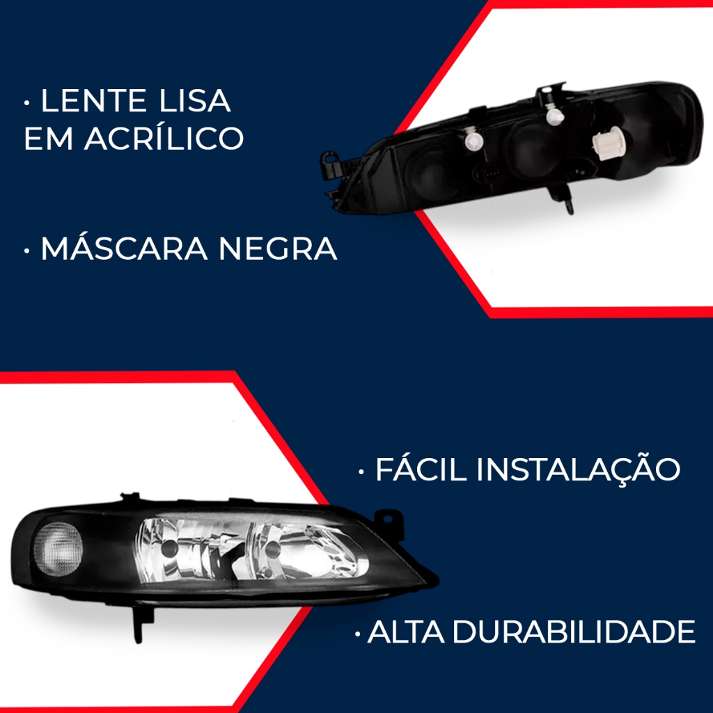 PAR FAROL VECTRA 2000 2001 2002 2003 2004 2005 MÁSCARA NEGRA ATENÇÃO: - Valor Referente ao Par (Lado Direito + Lado Esquerdo). COMPATÍVEL COM: - Vectra 1999; - Vectra 2000; - Vectra 2001; - Vectra 2002; - Vectra 2003; - Vectra 2004; - Vectra 2005. ADAPTÁVEL A: - Vectra 1997; - Vectra 1998; - Vectra 1999. ESPECIFICAÇÕES TÉCNICAS: - Produto Novo; - Lente Lisa em Acrílico; - Carcaça em Plástico; - Foco Duplo; - Pisca Embutido; - Máscara Negra; - Regulagem de Foco Manual com entrada para Motor Elétrico (não acompanha); - Encaixe de Lâmpada: Alta - H7; - Encaixe de Lâmpada: Baixa - H7; - Suporta Xênon e Lâmpadas de até 55W; - Encaixe Perfeito Sob Medida; - Ótima Qualidade e Acabamento; ATENÇÃO: - Garantia de 3 Meses; - Valor Referente ao Par (Lado Direito + Lado Esquerdo); - Recomendamos que a instalação seja feita por um profissional e não nos responsabilizamos pelo mau uso do produto. *As compras realizadas em nome de Pessoa Jurídica estão sujeitas à cobrança de ICMS, conforme Protocolo ICMS 41, de 4 de Abril de 2008. Caso você tenha dúvidas sobre o percentual a ser aplicado, consulte a Cláusula Segunda, §1° do referido Protocolo.