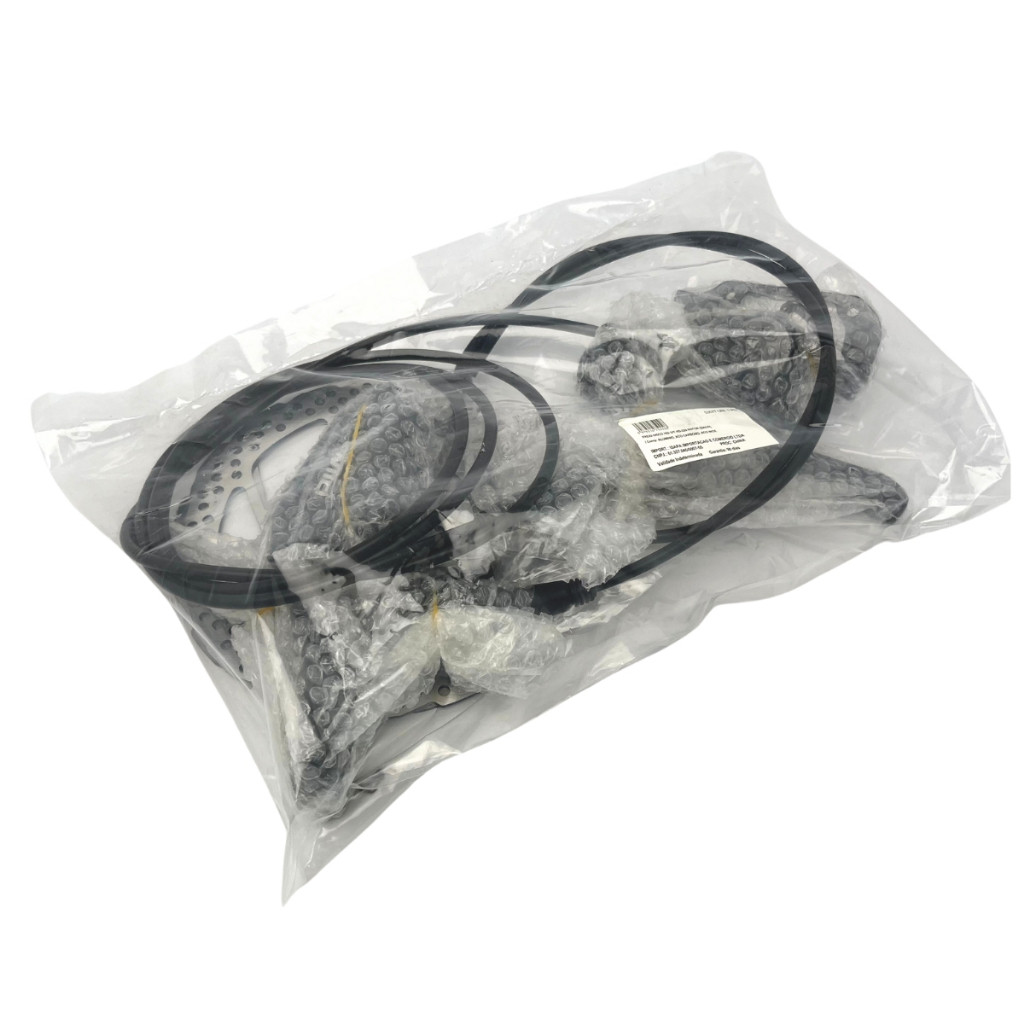 PAR FREIO HIDRÁULICO ABSOLUTE WILD 2 - HD-220 PINÇA 2 PISTÕES C/ DISCOS DE 6 PARAFUSOS 160MM PRETO - OEM SEM CAIXA Atenção: - Componentes seguem em SACO PLÁSTICO. Itens que compõe o anúncio: - 01 und – FREIO DISCO HIDRÁULICO ABSOLUTE WILD 2 DIANTEIRO 90CM - PRETO; - 01 und – FREIO DISCO HIDRÁULICO ABSOLUTE WILD 2 TRASEIRO 170CM – PRETO; - 02 und - DISCO ROTOR ABSOLUTE 160MM 6 FUROS C/PARAFUSOS. Descrição: PAR FREIO HIDRÁULICO ABSOLUTE WILD 2 é uma ótima em custo x beneficio disponível no mercado para freios hidráulicos. Proporcionando melhor desempenho e melhor controle em frenagem. O manete é fabricado em alumínio e pode ser usado com 2 dedos. Possui ajuste de distância entre a manopla e o manete. A pinça possui 02 pistões opostos e é fabricado em alumínio, que favorece na dissipação de calor. O conjunto de freio segue montado e com a sangria feita, a mangueira dianteira tem 90cm e a mangueira traseira tem 170cm. O conjunto segue com fluído mineral. Os discos são de aço inox com diâmetro de 160mm. O padrão de fixação do disco é para cubos de 6 parafusos. ** Acompanha as pastilhas; ** Acompanha parafusos para os discos; ** Acompanha adaptador IS/PM para a instalação da pinça de freio. Especificações: - Marca: ABSOLUTE; - Modelo: WILD 2 – HD-220; - Dianteiro + Traseiro; - Comprimento da Mangueira: Dianteiro – 90cm e Traseiro – 170cm; - Sistema: Hidráulico (óleo mineral); - Material: Manete em alumínio e pinça em alumínio; - Acompanha parafusos de fixação; - Freios montados, regulados e sangrados (pronto para instalar e usar); - Cor: Preto; - Peso: Freio Dianteiro – 355g, Freio Traseiro – 375g, Discos - 140g/cada; - Origem: China. Atenção: - Componentes seguem em SACO PLÁSTICO; - Produto original ABSOLUTE e importado pela ISAPA; - Garantia de 90 dias; - Acompanha nota fiscal. Aguardamos o seu pedido! INDIAN BIKE SHOP