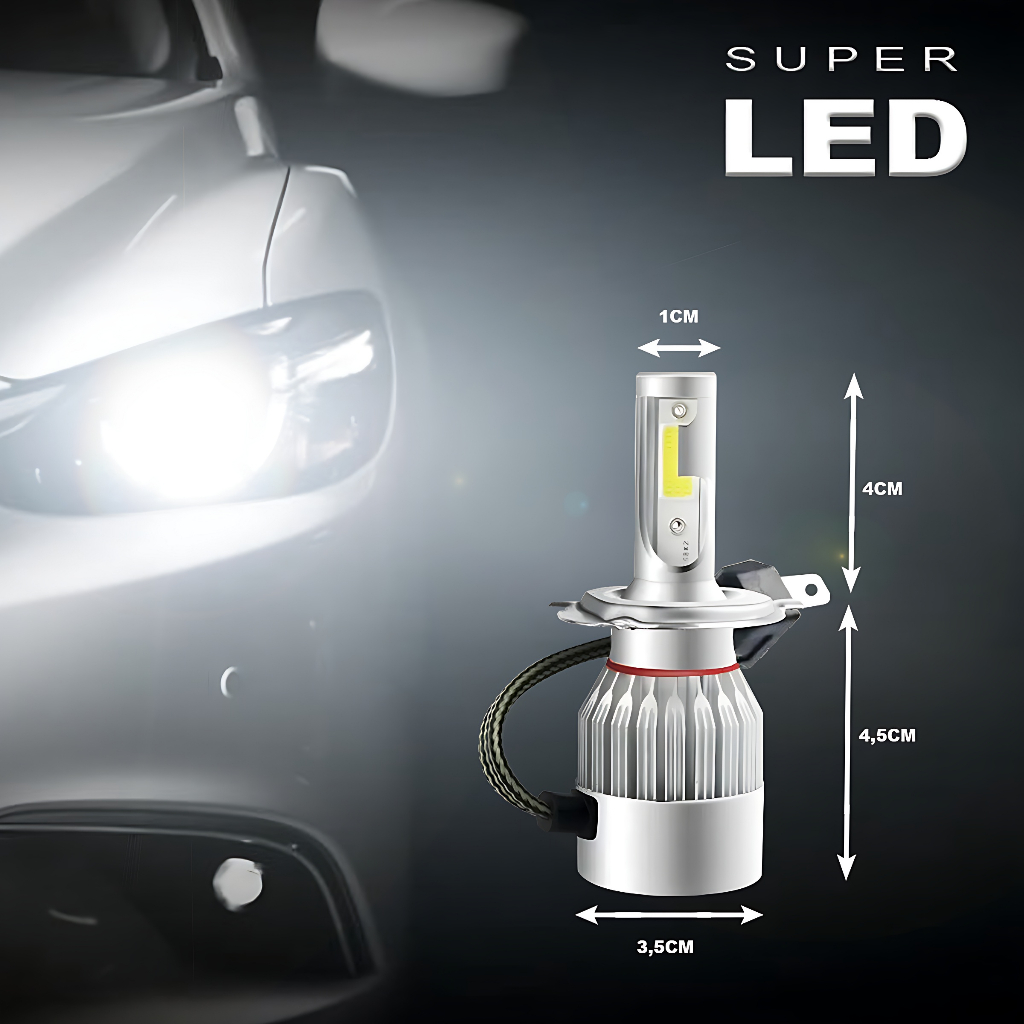 Par Lampada Farol Milha Super Led Carro C6 H1/H3/H4/H7/H11/HB4 6000k Efeito Xenon
