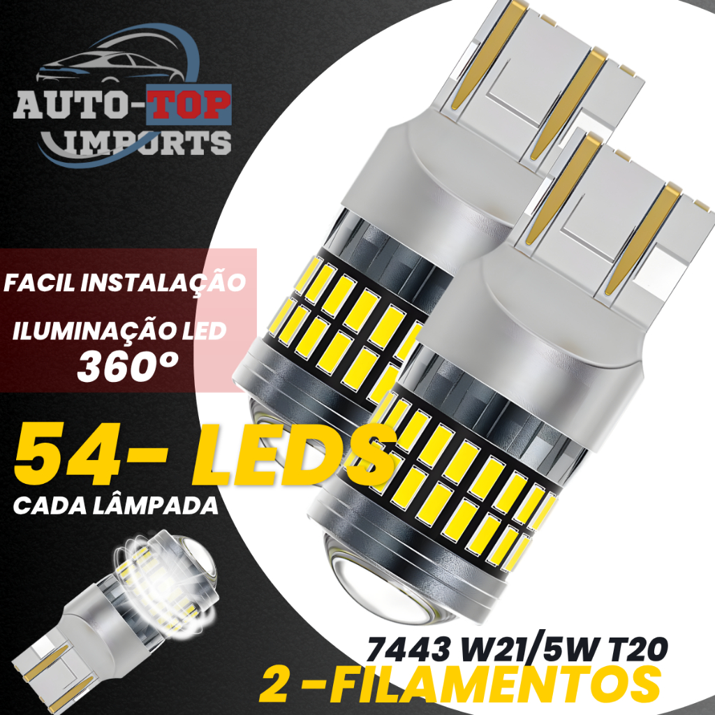 A Lâmpada LED Luz de Ré 7443 W21/5W T20 da AutoTop Imports é a escolha ideal para quem busca eficiência e luminosidade superior. Com uma temperatura de cor de 6000 K, proporciona uma luz branca intensa, garantindo visibilidade e segurança ao dirigir à noite ou em condições de baixa luminosidade. Com 54 LEDs por lâmpada e um consumo de apenas 5 W, este modelo oferece uma performance excepcional, reduzindo o consumo de energia sem comprometer a qualidade da iluminação. A instalação é simples e rápida, permitindo que você aproveite os benefícios de uma iluminação moderna e eficaz em seu veículo. A Lâmpada Luz de Ré é projetada para se encaixar perfeitamente no soquete 7443 W21/5W T20, tornando-a uma opção prática e funcional para diversos modelos de automóveis. Invista na segurança e na estética do seu carro com esta lâmpada de alta performance, que combina durabilidade e tecnologia avançada.