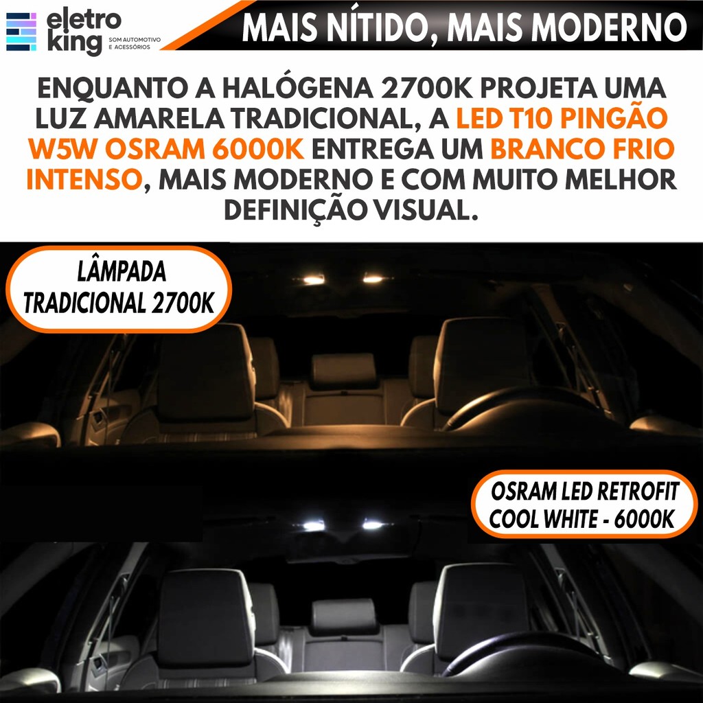 Par Lâmpada LED retrofit T10 Pingão W5W Pingo Osram 6000K Branco Frio 12V Original 350 lumens