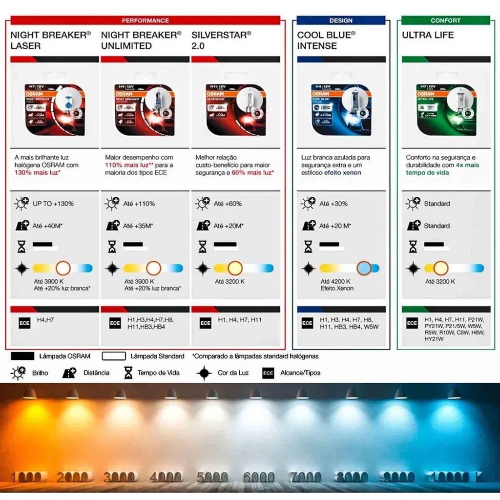 Lâmpada H7 Osram Night Breaker Laser (par) Confira a nova geração Night Breaker Laser - a lâmpada halógena da Osram que entrega maior performance e segurança a você! Usando uma tecnologia inovadora a laser, as lâmpadas entregam um brilho até 150% maior em comparação com o padrão legal mínimo, através de um filamento altamente projetado, que garante uma saída de luz extra. Assim, as lâmpadas fornecem um feixe de até 150 metros de comprimento e uma luz até 20% mais branca também em comparação com o padrão legal mínimo. Com uma visibilidade mais leve e melhorada, o produto é essencial para ajudar os motoristas a identificar e reagir aos riscos de tráfego de uma maneira mais rápida. Conteúdo da Embalagem: - 02 Lâmpadas H7 Night Breaker Laser Nova Geração - Código do Produto: 64210NL Diferenciais do Produto: - Maior performance: um feixe de até 150m de comprimento e 150% a mais de brilho - Para você que procura maior performance e alcance ao dirigir - Aplicação: Farol Alto, Farol Baixo ou Farol de Milha - Até 150% mais Luz que as Lâmpadas Halógenas Comuns - Alcance até 150m de comprimento - Luz Até 20% mais branca que uma lâmpada padrão - Facilita a Detecção de Obstáculos e Placas de Sinalização Dados Elétricos, Fotométricos e do Produto: - Lâmpada Certificada pelo INMETRO - Temperatura de Cor: 3900K - Lúmens: 1500 lm - Tensão: 12V e Potência: 55W - Soquete (base): PX26d Importante: - Garantia de 3 Meses. - Valor do Par. - Imagens Meramente Ilustrativas. - Recomendamos que a instalação seja feita por profissional especializado