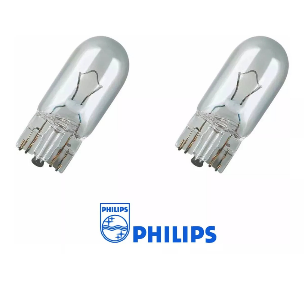 Par Lampada p/ farolete Original T10 - 12V 5w - Philips Produto Novo. Envio Imediato. Qualquer dúvida pergunte. Responderemos rapidamente. Comprando antes das 11h postaremos no mesmo dia. Essa lâmpada pode também ser colocada em lanternas de placa e até mesmo de teto. Dados: • Volts: 12V • Potencia: 5Watts • Base: W2,1x9,5d • GOC: 49090273 • ECE: Sim •INMETRO= Sim Cod interno: 4156161