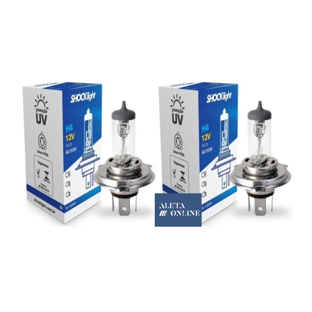 Par Lampada Shocklight Halogena Standart H4 12v 60/55w P43t