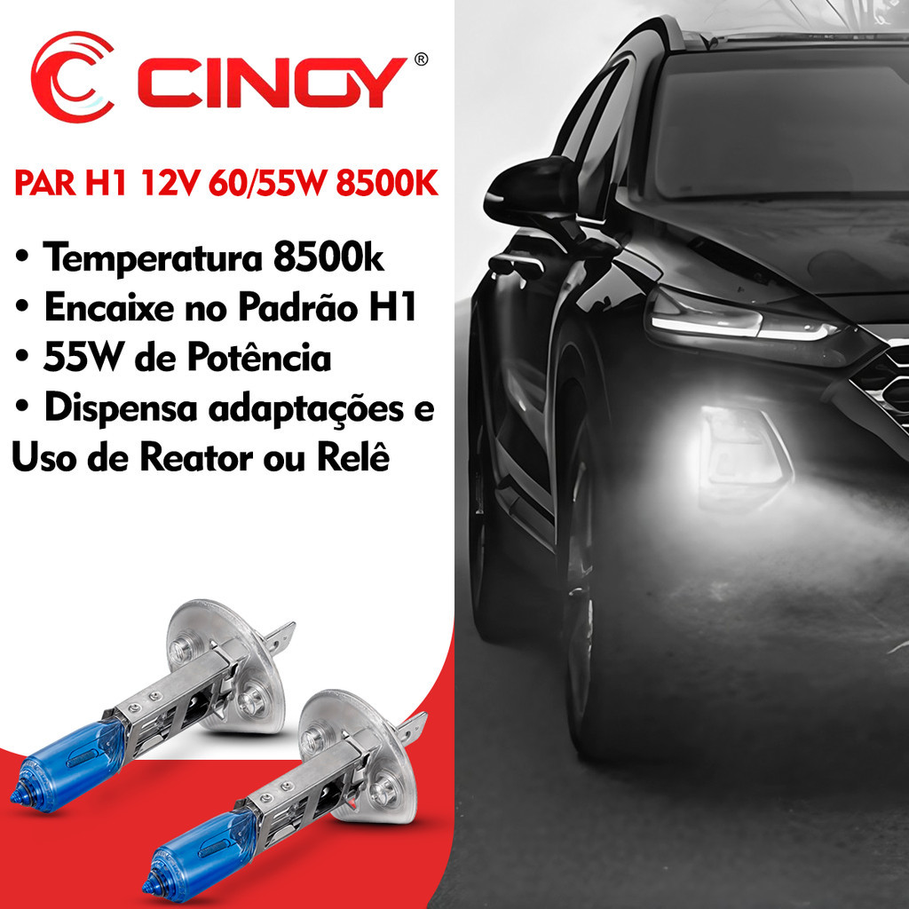 Par Lampada Super Branca Tipo Xenon H1 8500k 55w 12v Cinoy