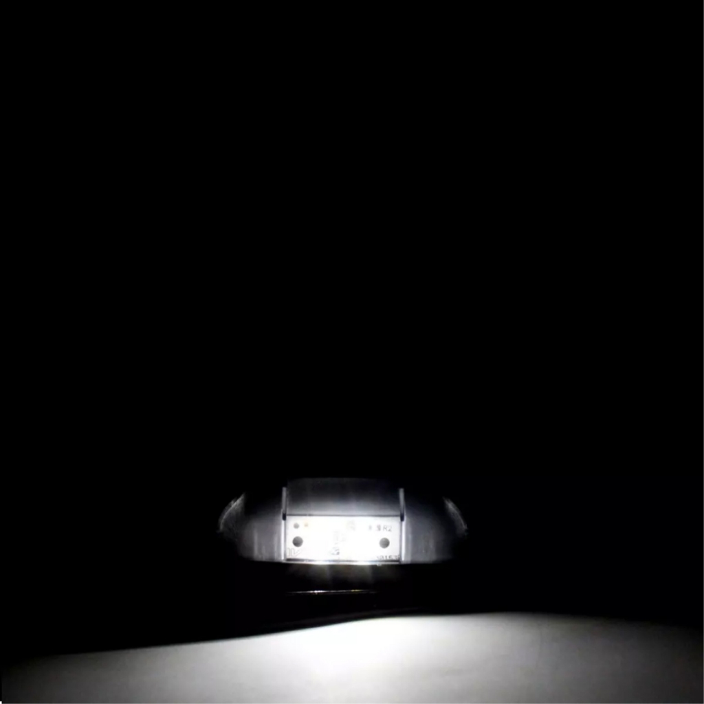 Par Lanterna Traseira Delimitadora / Luz da Placa - LED Incluso: 2 lanternas de placa Dimensões Aproximadas (cm): Largura 3,3 x Comprimento 8,5 Lente Cor Cristal LED Cor Cristal Adaptação Universal Especificações técnicas - Lente em Acrílico - Base em ABS - Iluminação LED (integrado a lanterna) - Bivolt (12V e 24V) RODOPEÇAS