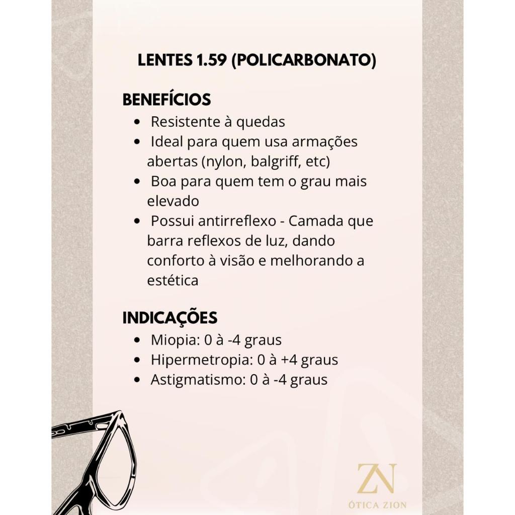 ⚠️ NÃO FAZEMOS DEVOLUÇÃO DE LENTES — LEIA ANTES DE COMPRAR!!! Por não realizarmos devolução de lentes, pedimos que tire todas as suas dúvidas no chat antes da compra, pois se trata de um item totalmente personalizado. LEIA ANTES DE COMPRAR!!!! Como realizar a compra: 1º Envie a foto da sua receita no chat para nós. 2º Vamos lhe ajudar na escolha da melhor lente para o seu grau. 3º No anúncio das lentes, escolha a lente que lhe indicamos e coloque no seu carrinho de compras. 4º Escolha a sua nova armação conosco e coloque no seu carrinho de compras. 5º Vá no seu carrinho e confirme se a armação e as lentes estão nele; se estiverem, confirme seu pedido. 6º Depois do pedido ser aprovado, vamos te enviar no endereço fornecido seu óculos completo!!! As lentes serão montadas apenas em armações disponíveis em nossa loja, ou serão enviadas para realização da montagem na Ótica de sua preferência. ATENÇÃO! POR SE TRATAR DE UM PRODUTO PERSONALIZADO ESPECIALMENTE PARA A NECESSIDADE DO CLIENTE, NÃO É POSSÍVEL REALIZAR DEVOLUÇÕES OU TROCAS. Vendemos apenas lentes monofocais, ou seja, somente lentes para quem tem grau de longe ou de perto. ANTES DE EFETUAR A COMPRA, NÃO SE ESQUEÇA DE NOS ENVIAR A FOTO DA SUA RECEITA ATRAVÉS DO CHAT. CASO NÃO SEJA ENVIADA DENTRO DE 6 HORAS, IREMOS MANDAR A LENTE COM A GRADUAÇÃO DISPONÍVEL NO ESTOQUE. TEMOS TAMBÉM LENTES PARA GRADUAÇÕES ESPECIAIS! OBRIGADO! EQUIPE SUA ÓTICA ON-LINE