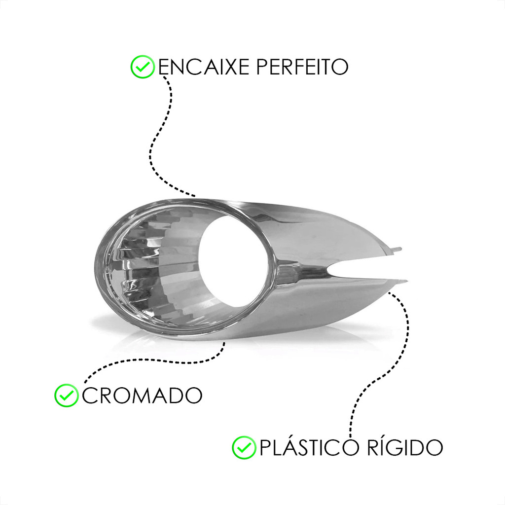 Par Moldura Grade Acabamento Cromado Farol De Milha Neblina Auxiliar Fiat Palio Siena ELX 2009 2010 2011 Compatível com: • Palio ELX - 2010 A 2011 • Siena ELX - 2008 A 2010 • Strada Treekking - 2009 A 2012 • Palio Weekend - 2009 A 2012 Obs: Verifique se o parachoque de seu veículo é similar ao de nossas fotos, caso seja de outro modelo nos questione via campo de perguntas que iremos encaminhar o link correto. Especificação Técnica: • Textura Lisa • Carcaça De Plástico Rígido • Acabamento Perfeito • Encaixe Sob Medida • Material Em Plástico De Altíssima Qualidade Conforme Os Padrões Originais • Cromada Conteúdo da Embalagem: • 01 Moldura LE • 01 Moldura LD Importante: Garantia de 3 Meses. Produto conforme o anúncio. Recomendamos que a instalação seja feita por profissional especializado e não nos responsabilizamos pelo mau uso do produto.
