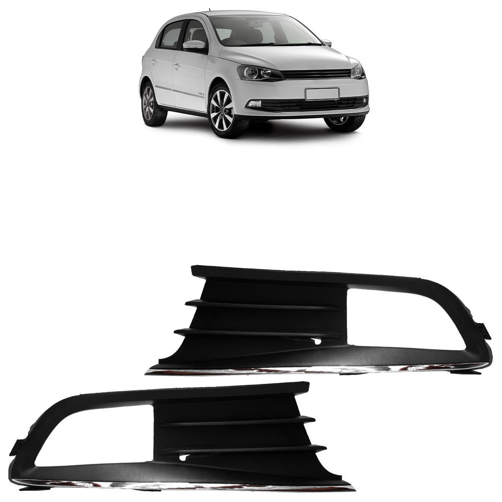 Par Moldura Grade Milha Gol G6 2012 2013 Preto Com Friso Cromado