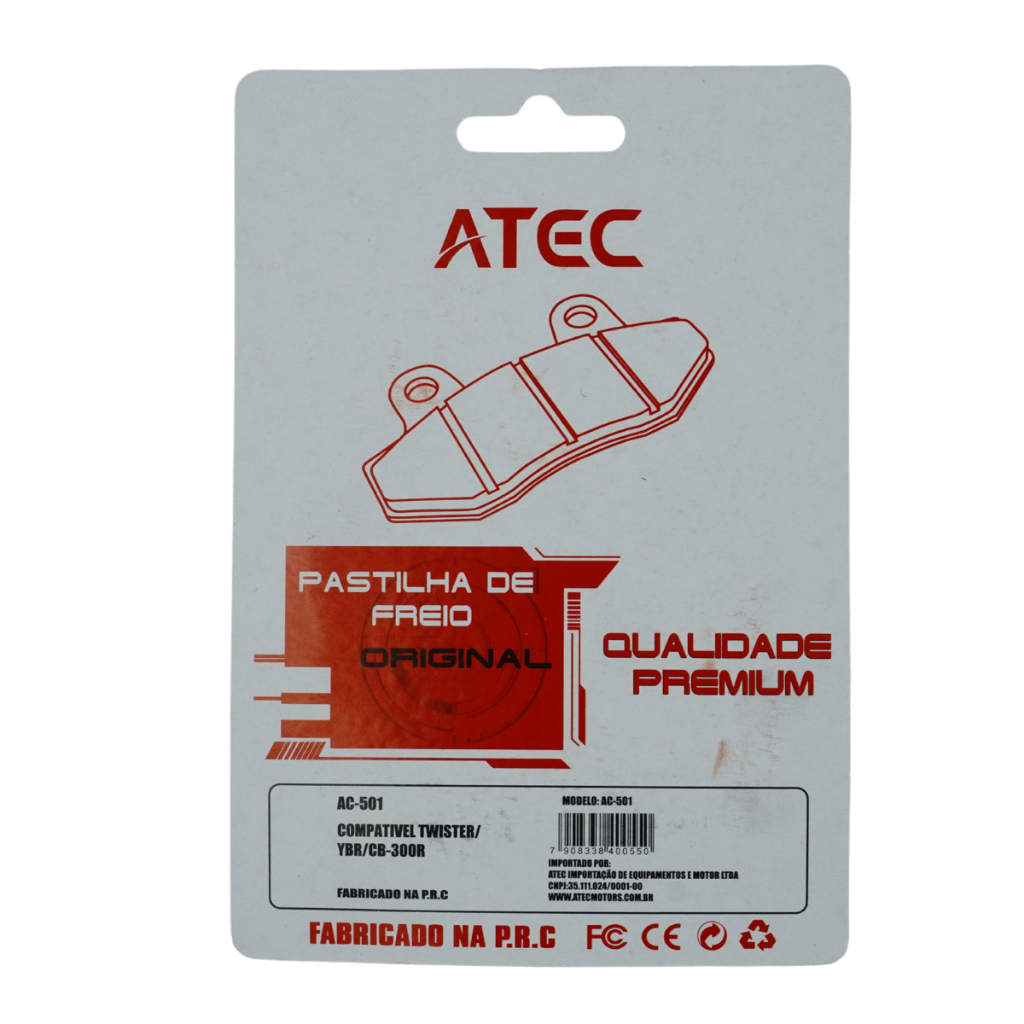 Pastilha de Freio Dianteira Atec AC-501 - Honda Twister, YBR, CB300R e Fazer 250 Melhore a performance da sua moto com a pastilha de freio de alta qualidade da Atec! A Pastilha de Freio AC-501 Atec oferece excelente desempenho, durabilidade e segurança para os modelos de moto mais populares. Compatibilidade: Honda Twister 250 (2003 a 2020) – Dianteira Yamaha YBR 125 (2001 a 2008) – Dianteira Honda CB300R (2009 a 2015) – Dianteira Honda Fazer 250 (2004 a 2015) – Dianteira Características: Produto de alta performance e resistência – para garantir maior segurança durante a frenagem. Facilidade de instalação – compatível com os modelos listados, sem necessidade de adaptações. Excelente custo-benefício – durabilidade e preço justo para reposição de peças. Garantia de qualidade Atec – marca conhecida pela confiança e segurança em peças para motos. Recupere a eficiência do sistema de frenagem da sua moto com a pastilha AC-501 Atec e rode com mais segurança e confiança! Mais detalhes: Tipo de pastilha: Dianteira Modelo compatível: Twister, YBR 125, CB300R, Fazer 250 Material: Alta qualidade para uso prolongado 📦 Envio rápido e garantido. 💬 Qualquer dúvida, estamos à disposição para te ajudar!