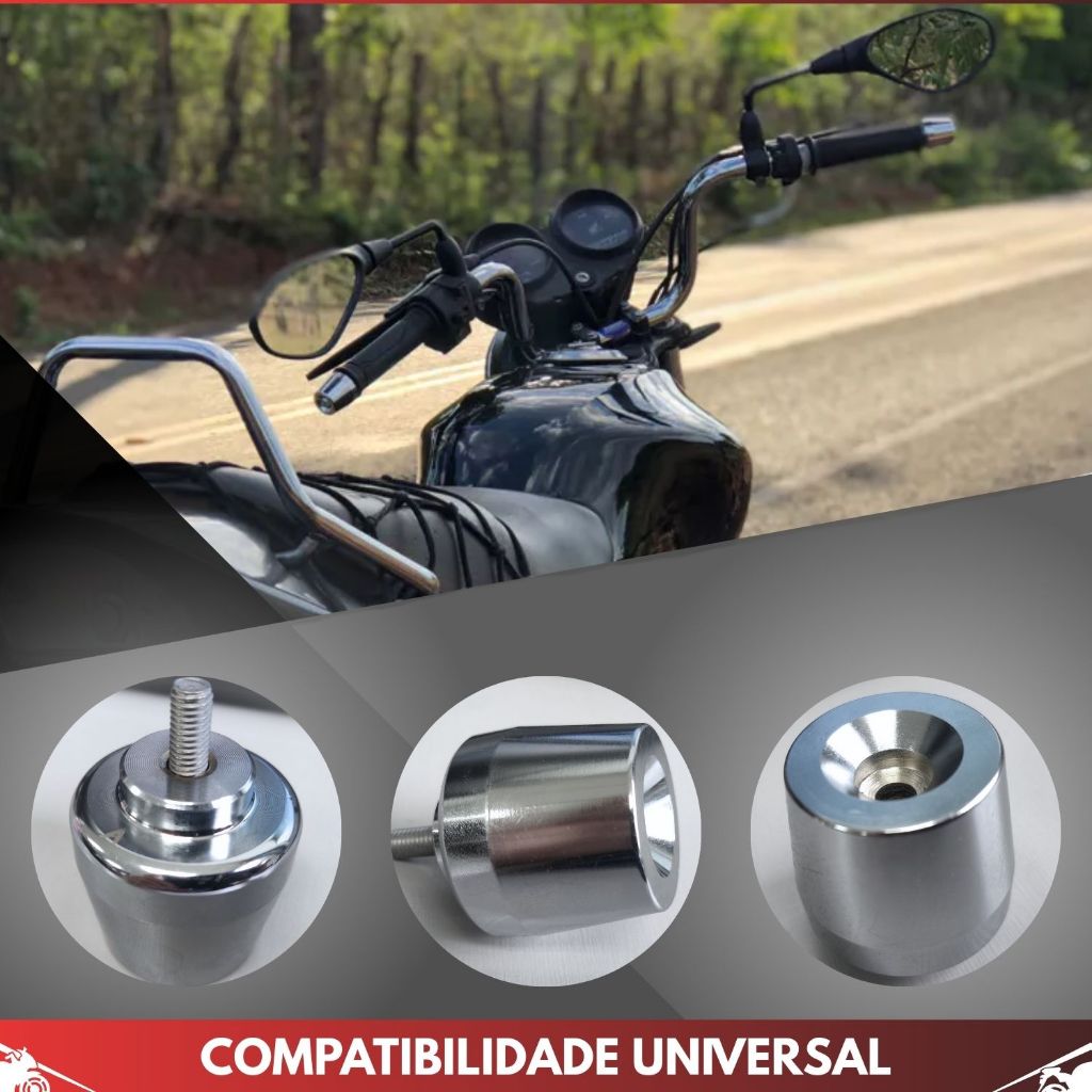 PRODUTO CONTÉM: 2x PESO DE GUIDÃO MODELO PCX 150 CROMADO 2x Parafusos APLICAÇÃO: • Universal, serve em qualquer moto que tenha suporte de peso no guidão. O peso de guidão (também chamado de contra-peso) é uma peça instalada nas extremidades do guidão, cuja função principal é: • reduzir vibrações transmitidas às mãos durante a pilotagem. • melhorar estabilidade da direção; • proteger a ponta do guidão em pequenas quedas ou impactos leves. !!!!!!!!!!!!!!! FOTOS MERAMENTE ILUSTRATIVAS !!!!!!!!!!!!!!! SOBRE NOSSA EMPRESA: Somos uma organização com anos de experiência no mercado. Seja você um apaixonado por velocidade, um aventureiro de estrada ou um entusiasta da personalização, cumprimos a missão de fornecer peças e acessórios da mais alta qualidade para elevar sua experiência de pilotagem a um novo patamar. UTILIZE O CAMPO DE PERGUNTAS PARA TIRAR SUAS DÚVIDAS, e apenas confirme a compra em caso de CERTEZA de compatibilidade do produto! CÓDIGO: KIT_18438