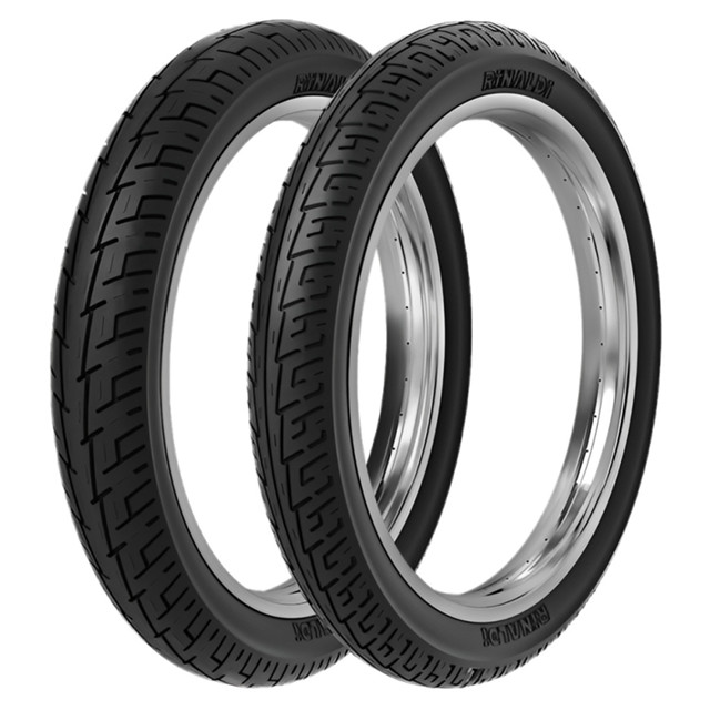 Kit Contém: 1 - Pneu Rinaldi 2.75-18 48P 48P BS32 (dianteiro) 1 - Pneu Rinaldi 90/90-18 57P BS32 (traseiro) Aplicação em: Honda: CG Titan 125 150 160 // CG Fan 125 150 160 // Start 150 160 // Cargo 150 160 // Turuna // Cbx 150 Aero // Ml 125 // Today Yamaha: Factor 150 // Rd 125 // Rd 135 // Rdz 125 // Rdz 135 // Rx 180 // Ybr 125 Dafra: Speed 150 // Riva 150 Kasinski: Comet 150 // Flash 150 // Seta 125 // Seta 150 Suzuki: Gsr 125 // Katana // Yes 125 Especificações: Marca: Rinaldi Modelo: BS32 Medida: 2.75-18 e 90/90-18 Aro (ambos): 18 Aplicação: Dianteiro/Traseiro Capacidade (Dianteiro): 180 Kg / 150 Km/h Capacidade (Traseiro): 230 Kg / 150 Km/h Índice de Carga (Dianteiro): 48 Índice de Carga (Traseiro): 57 Índice de Velocidade (Ambos): P Montagem (Ambos): Tube Type (com câmara) Pneus desenvolvidos com boa tração, oferecem excelente aderência às curvas, ótima estabilidade e segurança. Para motos do dia-a-dia de pequena e média cilindrada possui uma carcaça resistente que oferece maior durabilidade e sua banda de rodagem foi desenvolvida para dar maior segurança ao motociclista, gerando assim baixa resistência à rolagem; boa dirigibilidade e resistência à aquaplanagem. PERGUNTAS FREQUENTES: O PNEU É NOVO OU REMOLD? R: Todos os nossos pneus são novos e originais. O PNEU VEM COM NOTA FISCAL? R: Sim, todos as nossas vendas acompanham nota fiscal. O PNEU VEM COM A RODA/ARO? R: O anúncio trata-se apenas do pneu. QUAL A DATA DE FABRICAÇÃO? R: Enviamos sempre de fabricação recente, conforme recebemos da fábrica. O PNEU ACOMPANHA CÂMARA DE AR? R: Não, o anúncio trata-se apenas do pneu. CUIDADOS COM O PRODUTO: *Recomendamos que a montagem seja feita por um profissional e ferramentas adequadas, dê preferência para borracharias de excelente procedência. Antes de iniciar a montagem do pneu, verificar se o aro está em perfeito estado. Não é recomendável recuperar aros danificados, pois qualquer tentativa nesse sentido poderá alterar totalmente as características originais, prejudicando o rendimento do pneu, criando problemas de vibrações e comprometendo a segurança do veículo.