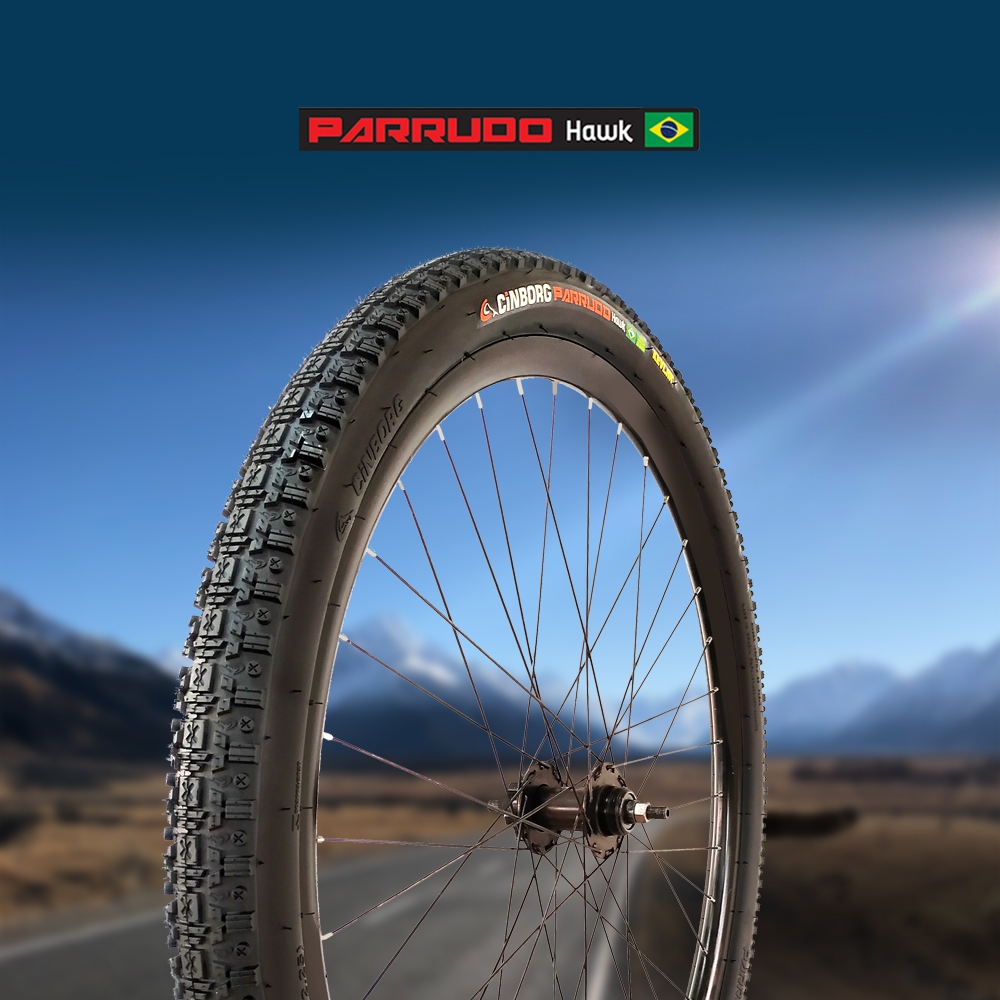 Par de Pneus Bike Aro 26 Parrudo Hawk 26x2.10 (54-559) Descrição Técnica: Aro: 26 Medida: 26x2.10 (54-559) Observação: Utilização apenas COM câmara. Posição: Dianteiro / Traseiro Fabricação: Nacional Modelo: Parrudo Hawk Marca: Cinborg Peso Suportado: Velocidade Máxima Suportada: Contém: 2 Pneus Pneu novo, original e com certificação do Inmetro. Possui cravos centrais especiais para terrenos compactos. Não desliza e não acumula barro. Auto controle na pilotagem e em curvas
