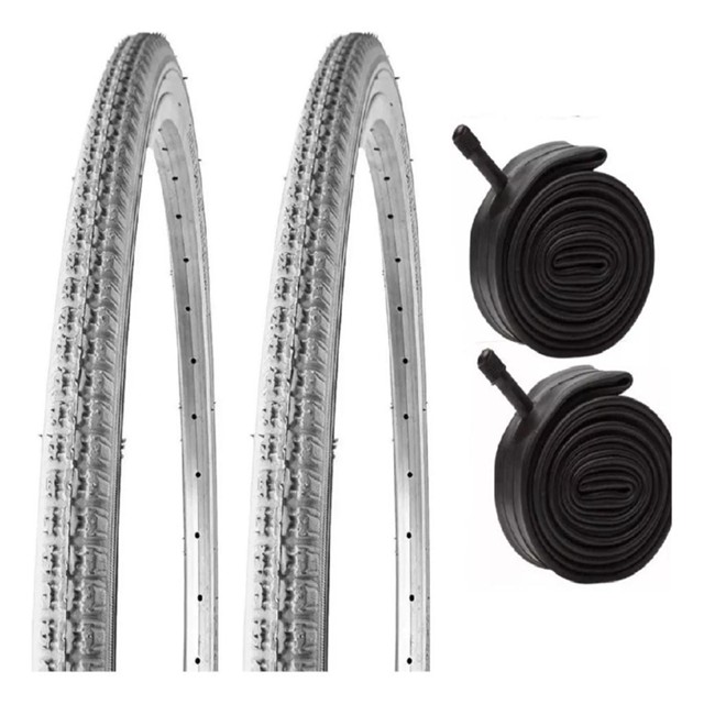 Par Pneus Cadeira De Rodas Aro 24x1.3/8 + Camaras Vee Rubber Cor Cinza