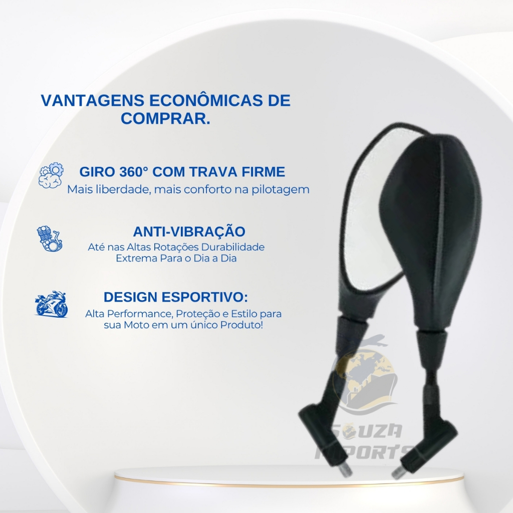 Par Retrovisores Estilo BMW F800 PREMIUM – Giro 360° | Compatível Honda e Yamaha Visual Sofisticado + Visão Ampliada + Máxima Estabilidade Eleve o visual da sua moto e ganhe mais segurança na pilotagem com o Retrovisor Estilo BMW F800. Com giro 360°, lente convexa premium e estrutura reforçada, este par de retrovisores é o upgrade ideal para quem busca desempenho, estilo e durabilidade! DESTAQUES DO PRODUTO: Giro 360° com Trava: Ajuste em qualquer ângulo, com fixação firme Lente Convexa Premium: Campo de visão ampliado em até 30% Design Esportivo BMW F800: Inspiração nas motos alemãs de alta performance Anti-vibração: Visão estável mesmo em alta velocidade Resistente a Impactos: Estrutura reforçada que aguenta quedas leves Proteção UV: Espelho não desbota com o tempo COMPATIBILIDADE GARANTIDA: Honda: CG 125 / 150 FAN / TITAN / CARGO / START / JOB CBX 250 Twister / CB 300R XRE 300 / Biz 100 / 125 NXR 125 / 150 Bros Yamaha: YBR 125 / 150 • Factor até 2018 Fazer 150 / 250 XTZ 125 / 150 Crosser / 250 Lander / 250 Ténéré MT-03 / MT-07 (até 2018) Rosca padrão M10 (direita e esquerda) ITENS INCLUSOS: 1x Retrovisor Direito (preto fosco) 1x Retrovisor Esquerdo (preto fosco) 1x Kit de Adaptadores (Honda/Yamaha) 1x Manual de Instalação Rápida ESPECIFICAÇÕES TÉCNICAS: Material: ABS ultra-resistente + haste de alumínio Acabamento: Preto fosco (resistente a riscos) Dimensões: 30cm x 12cm x 4cm Peso (par): 320g Lente Convexa Fumê (opções: azul ou prata sob consulta) Instalação: Plug & Play – sem adaptações BENEFÍCIOS EXCLUSIVOS: Visual Premium: Deixe sua moto com aparência esportiva de alto padrão Segurança Extra: Ampla visão, reduzindo pontos cegos Fácil Instalação: Sem necessidade de ferramentas especiais Ajuste para Todos os Pilotos: Giro 360° para qualquer posição Alta Durabilidade: Projetado para durar até 5 anos sem folga ENVIO IMEDIATO! Postagem em até 24h após a confirmação do pagamento Embalagem reforçada para garantir que seu produto chegue intacto