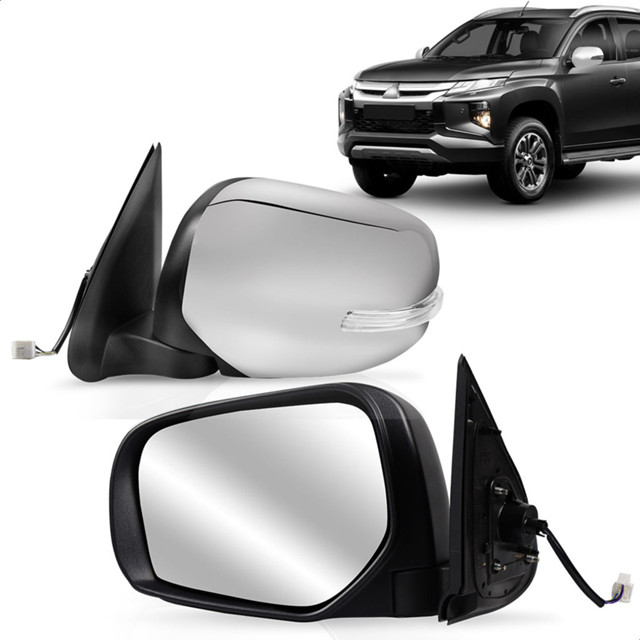 Par Retrovisor L200 Triton 2015 2016 2017 2018 2019 2020 2021 Elétrico Cromado Com Pisca