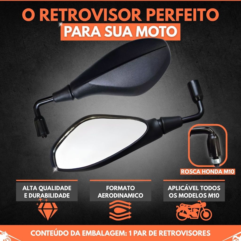 Par Retrovisor Haste Curta 90° L Titan 150 160 Gs 650 F800 Xre Bmw Cb Rosca Honda Lente Convexa CONTEÚDO EMBALAGEM: • 1x Par de retrovisores APLICAÇÕES: • TITAN 125 150 160 • FAN 125 150 160 • BROS 125 150 160 • XRE 300 190 • BIZ 100 125 Todas as motos com encaixe M10 para retrovisor. ESPECIFICAÇÃO TÉCNICA: • Lente Convexa: Espelho amplo para maior campo de visão, promovendo mais segurança no trânsito • Modelo: Haste Curta 90° • Material: Plástico e vidro de alta qualidade • Cor: Preto Este par de retrovisores foi projetado para motocicletas como BMW GS 650, F800, além de modelos Honda como Titan, CB, XRE e outros com rosca padrão Honda L. Com acabamento de alta qualidade, oferece excelente visibilidade e segurança para os pilotos, garantindo uma condução mais tranquila e sem surpresas. !!!!!!!!!!!!!!! FOTOS MERAMENTE ILUSTRATIVAS !!!!!!!!!!!!!!! SOBRE NOSSA EMPRESA: Somos uma organização com anos de experiência no mercado. Seja você um apaixonado por velocidade, um aventureiro de estrada ou um entusiasta da personalização, cumprimos a missão de fornecer peças e acessórios da mais alta qualidade para elevar sua experiência de pilotagem a um novo patamar. UTILIZE O CAMPO DE PERGUNTAS PARA TIRAR SUAS DÚVIDAS, e apenas confirme a compra em caso de CERTEZA de compatibilidade do produto! CÓDIGO: COD_25503.