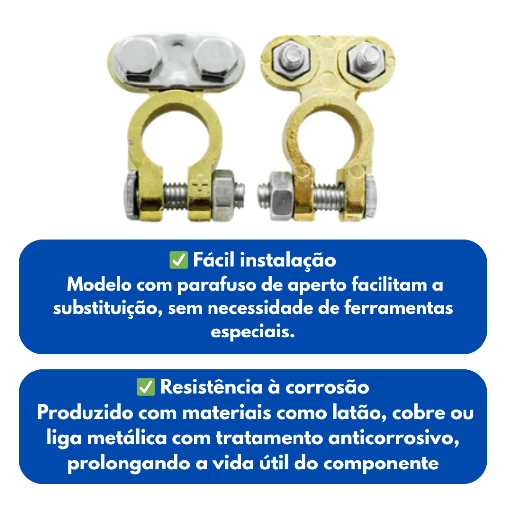 🔋 Par Terminal de Bateria 12V Positivo/Negativo Cinoy ✅ Universal para baterias 12V ✅ Instalação rápida e fácil ✅ Excelente condução elétrica ✅ Anticorrosivo e durável ✅ Ideal para carros, motos e caminhões 📦 Contém: 1 terminal positivo + 1 terminal negativo 🚚 Envio rápido