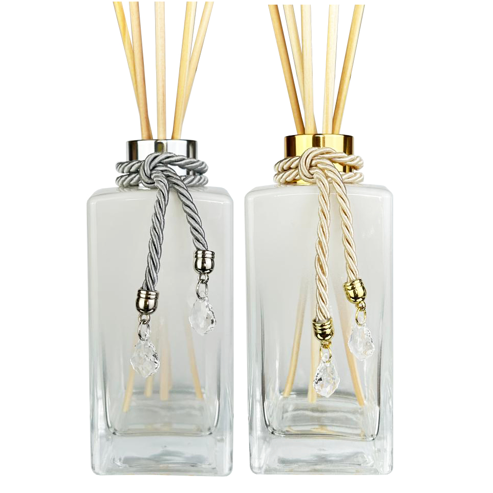 Par Vidro Square Retangular Degrade Branco 250ml Difusor de Varetas Luxo com Pingente Decorativo