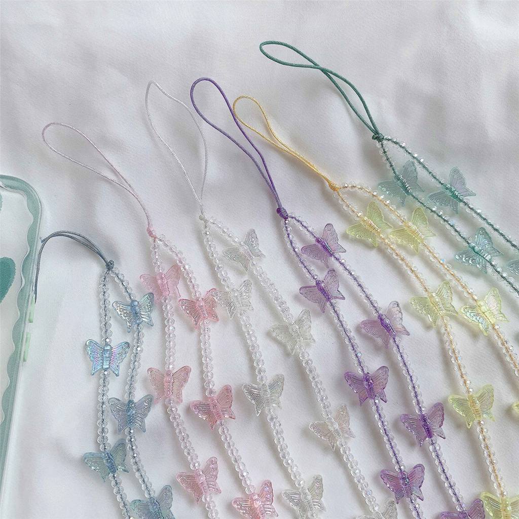 Para A Caixa Do Telefone Caso Fone De Ouvido Multifuncional Alça De Moda Girly 6 Cores Brilhante Borboleta Contas De