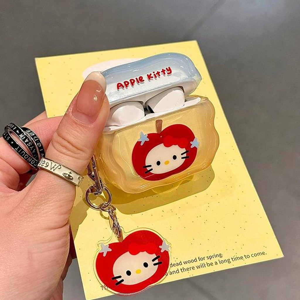 Para Airpods 4 Pro 3 2 1 Sweet Apple Hello Kitty Contraste Color Wave Edge Soft TPU Capa De Fone De Ouvido À Prova De Ch