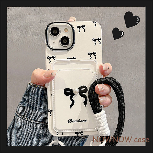 Para iPhone 15 14 13 12 11 Pro Max X Xr XS 7 8 Plus Bolsa De Cartão De Pérola Tridimensional Feita À Mão Com Laço Preto